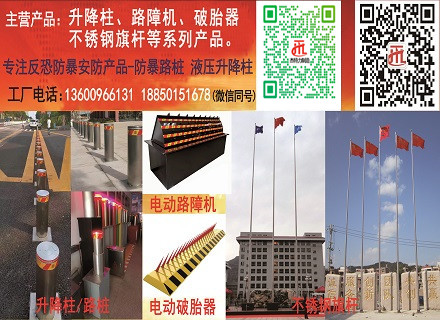 本公司是一家集研發(fā)、設計、生產(chǎn)、銷售于一體的企業(yè),主營產(chǎn)品有:不銹鋼旗桿,升降柱,路障機,破胎器,崗亭,監(jiān)控桿,拒馬等系列產(chǎn)品。創(chuàng)新的產(chǎn)品開發(fā)理念,不斷提升的技術(shù)優(yōu)勢,生產(chǎn)制造工藝,規(guī)?;纳a(chǎn)能力,使廈門杰特力廣泛贏得客戶的合作與信賴。